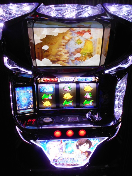 リールが勝手に動いて青図柄が揃い、AT【チェインクロニクルチャプターズ】に突入します